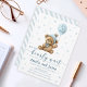 Watercolor bear with balloon invitation for baby boy shower.