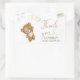 Bear themed baby shower thank you sticker featuring a cute teddy bear and some green and beige balloons. This gender neutral bear themed baby shower sticker also features some greenery and a modern calligraphy heading with a heart. It's a cute way to thank guests for coming to your gender neutral baby shower.