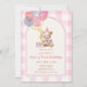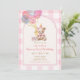 Bear Balloon Pink Gingham Beary First Birthday Invitation