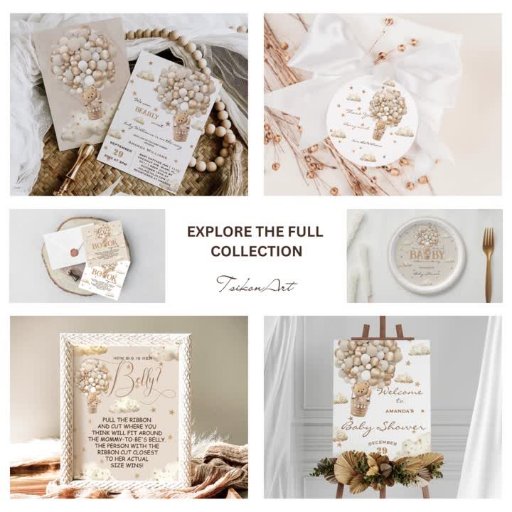 Embark on a whimsical journey with our traveller bear in the hot air balloon adventure! 🌟 Set against a backdrop of neutral tan, white, and gold tones, where clouds mingle with shimmering gold glitter stars, 🌈 a charming baby teddy bear gracefully floats within an elegant beige gold hot air balloon. 🐻🎈With its minimalist design and heartwarming script typography, 💖 this invitation is the perfect choice for your baby shower celebration!