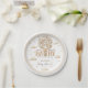 Step into a whimsical hot air balloon adventure with our traveller bear! 🌟 Amidst soft neutral tones and shimmering gold glitter stars, a charming baby teddy gracefully floats in an elegant beige and gold balloon. 🐻🎈 With minimalist design and heartwarming typography, 💖 this teddy bear cute plate is perfect for your baby shower celebration!