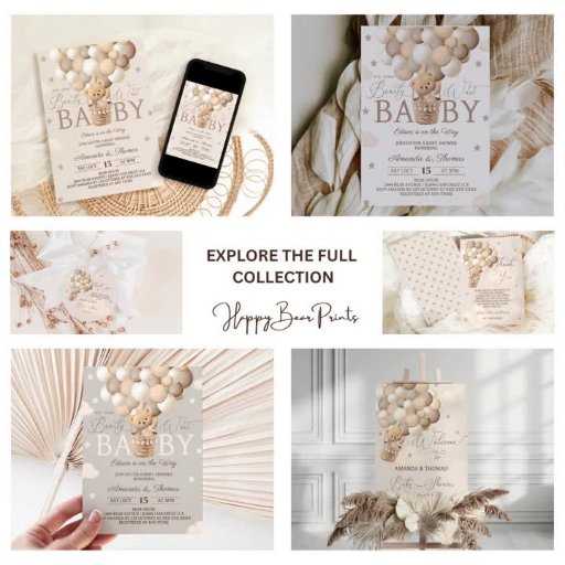 Teddy Bear hot air balloon Themed gender neutral baby shower matte or clear acrylic invite invite. Matching items available, kindly message via zazzle.