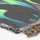 A quality printed throw has its advantages. This is a much finer weave throw than its loopier cousins, and though lighter, it is worth the investment for custom room accessorizing. The back is much prettier than the typical brown, and the fringe on the long sides very vivid, the selvage nicely done. Before photographing, I washed the throw in cold water, delicate, with a thicker woven throw the same size. On tumble dry low, this throw was dry in half the time as the other. This is a very practical quality if you use throws for furniture covers or to wrap up in frequently. The sleekness of the fabric makes it a great layer for accenting or protecting without the feeling of sitting on too much stuff. Perfect for napping or when you feel a light chill coming on. The color printing is beautiful and on this fabric, matched the design and color of my Photoshop image. This is an advantage for blending room fabrics and colors. The fringe on the short sides prints the colors from the design image and therefore varies from the side fringe. I streaked a white fractal line through the plaid pattern to give the illusion of weaving. This printed as crisp as an illusory thread, and put some white in the short side fringe, showing another advantage of print vs loomed- for artistic purposes, line lines, detail, and color integrity can be planned and preserved. My loomed throws have color limitations and more of a needlepoint texture. Print throws reproduce an exact image. The throw felt a little stiff straight out of the package, but this went away in the first delicate wash. Of course I searched the wash water for ink or bleeding and there was none.