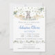 Bear Blue Floral Greenery Baptism Girl Invitation