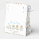 This cute and whimsical thank you favour box features a watercolor train in pastel blue, yellow and brown with adorable baby bears. The text combines handwritten script and serif fonts for a stylish and modern look. This is perfect for a bear or train themed baby shower.