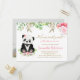 Sweet cute adorable blush pink floral, pink rose flower greenery eucalyptus, watercolor foliage botanical, sage green leaves, gold leaf, baby panda bear, we can bearly wait! It's a girl! baby shower invitation. You can customise this modern elegant invitation with your own text and photo. Please replace the sample photo with your own. Photo sample courtesy of https://pixabay.com/es/users/regina_zulauf-2147792/