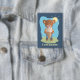 Fun summer pinback button featuring a brown bear getting brain freeze while eating a big ice cream cone . Personalize it with your text or a name .