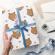 Cute bear animal wrapping paper with a pattern of bear faces and hearts on a white background.