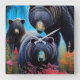 Bear family collage square wall clock