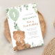 Bear first birthday greenery balloons green brown invitation