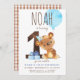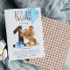 This first birthday party invite features a teddy bear with blue party hat. Back of invite has a brown gingham pattern; perfect for boy's woodland forest animal theme birthday party. Personalise the invite with your details and you have the options to purchase printed invitations or a digital download.