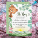 This charming Bear Forest Cub Baby Boy Shower Invitation features sweet forest friends, perfect for a boy's special event. The design captures the essence of nature with adorable animals like foxes, bears, and owls, creating a whimsical and enchanting atmosphere for the celebration. The nature inspired accents and earthy colour palette add a touch of warmth and cosiness to the overall look, making it an ideal choice for a nature-inspired party. Let these cute forest creatures set the tone for a memorable and delightful gathering. Click on "Personalise this template" to change the text and add your favourite pregnancy photo!