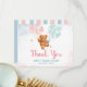 Bear Gender Reveal Pink and Blue Balloon Thank You Card