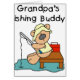 A cute bear fishes from a dock and kid style text reads "Grandpa's Fishing Buddy" on grandpas fishing buddy T-shirts, mousepads, bags, and more.