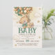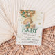 Teddy Bear with sage green beige ivory tan balloons Baby Shower party invite with customisable text, featuring the sweetest bear soaring high with cute hot air balloons! This bohemian-style green teddy bear invitation is perfect for gender neutral baby shower parties, celebrating girl's or boy's arrival. Picture a cute baby boy teddy bear with a green bow on his neck, holding onto balloons with delight. Don't forget to explore the full collection! 💚