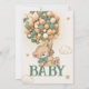 Bear Green Balloons Baby Shower Invitation