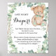 Greenery with gold frame Bear Baby Shower Design. For additional changes (other wording, font colour, font style, background, add additional information or photo on the back), click on personalise, scroll down and click on the link "Edit using Design Tool". ** Check the collection for all matching designs.**