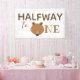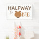 A half birthday banner for your baby. Celebrate your baby’s first six months with this cute banner. It has a white and brown colour scheme with the word "One" including a bear face illustration as the first letter of the word. Simply add this banner to your cart, and happy half birthday to your wonderful baby!