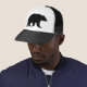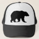 Grizzly (Brown) bear walking, black silhouette on black and white hat. Original art by M Chaume. Have a happy day!