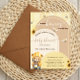 Bear and Honey Bee Baby Shower invite. This delightful design features adorable, small bumble bees in soft pastel colours, creating a gender-neutral and whimsical atmosphere. Picture a bear holding a honey can, adding a touch of endearing playfulness to the celebration.