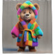 Bear in a colourful robe shower curtain