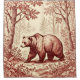 A vintage looking toile de jouy image of a bear wandering through a forest, in vivid red-browns on a tan background, makes this shower curtain perfect for anyone who loves animals, wildlife, nature, and the outdoors.