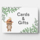 Guide your guests to -cards and gifts- spot/station with this adorable "Cute Bear in the Wood" Baby Shower Plaque! Featuring a charming baby bear surrounded by lush greenery and rustic woodland elements, this plaque is the perfect way to set the scene for a cosy and heartwarming celebration.