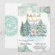 Celebrate the impending arrival of a precious cub with our adorable polar bear-inspired "baby it's cold outside" baby shower invite, all set against the backdrop of a serene snowy pine forest.