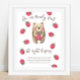 Gender neutral baby shower invitations. Featuring the saying 'WE CAN BEARLY WAIT!', an illustration of a watercolor bear with raspberry in paws, and many red berries. Matching items available.