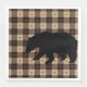 Perfect for the winter cabin in the woods type. Tan, black and red plaid background with the silhouette of a bear