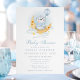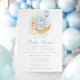 Bear On Moon Watercolor Striped Boy Baby Shower Invitation