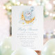 Invite guests to a magical baby shower celebration with this enchanting watercolor invitation featuring an adorable bear perched on a crescent moon, holding a blue balloon. Set against a starry night sky with gentle clouds, this design captures a dreamy, whimsical feel, perfect for a baby boy’s shower. The soft watercolor tones and playful striped outfit of the bear make this invitation ideal for a celestial or nighttime-themed event. It’s a beautiful choice for parents who want to create a cosy, memorable gathering inspired by the wonder of the night sky.