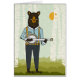 Illustration of a hipster bear wearing clothes in the woods playing the banjo.
