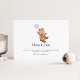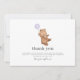 A photo thank you card featuring a sweet bear holding a purple balloon. Ideal for thanking your guests for coming to your 1st Birthday party!