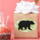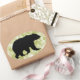 Brown bear (grizzly, kodiak), black silhouette, mottled green background. You can choose other shapes of sticker if desired - this design looks best on round, square, rectangle and oval. Bear silhouette: M Chaume.