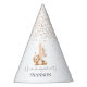 Organising a first birthday, these sweet bearly believe it birthday party hats will be the perfect addition to your planning. Featuring the saying 'WE CAN BEARLY BELIEVE IT!', an illustration of a watercolor bear holding pampas grass, peach delicate flowers, and personalised with their name.