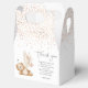 Planning a first birthday is a labour of love, and our charming bear-themed thank you favour boxes are the perfect finishing touch. Featuring a tender illustration of a bear holding pampas grass amid peach flowers and a customisable thank you message, these boxes encapsulate gratitude in the most endearing manner. Tailor the font style, size, and colour to your preference for that added personal touch.
