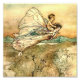 Arthur Rackham was one of the leading illustrators from the 'Golden Age' of book illustration. This painting is of “Titania” from Shakespeare’s “Midsummer’s Night Dream”. This painting is called “Bear the Changeling to My Bower” and depicts a fairy flying to the queen carrying a changeling child on her back.