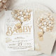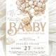 The invitation features a delightful gender-neutral design that combines the charm of a teddy bear with the excitement of balloons. The overall aesthetic is sweet and adorable, creating a warm and welcoming atmosphere for the upcoming baby shower. The headline, written in a playful and whimsical font, reads: "We Can Bearly Wait" The font style reflects the joy and anticipation surrounding the event, evoking a sense of childlike wonder. To further enhance the gender-neutral theme, the invitation avoids the use of any specific colours associated with traditional gender roles. Instead, it embraces soft and neutral braun tones, fostering an inclusive and welcoming environment for all guests. The design radiates warmth, joy, and anticipation, inviting guests to join in the celebration of the forthcoming arrival of a precious little one.