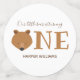 Our bear is turning one first baby birthday table confetti. This confetti is white and brown with the word "One" in large letters with a bear face illustration as the first letter of the word, along with more bear faces and a “1st”. Simply customise it, add it to your cart, and happy birthday to your wonderful baby!
