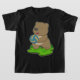 The t-shirt feels and looks great quality, a good thick cotton. It will be a little big for my son, but that means he will be able to wear it and not out grow it too soon. The print was as described on the order when personalised. True size, shape and colour T-shirt- thanks.