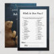 Adorable Twinkle, Twinkle Little Star themed baby shower design with momma bear and a baby bear looking up at the galaxy in the night sky. This is a What's In Your Purse baby shower game.