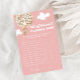 Step into a world of whimsy and anticipation with our Bear Who Knows Mummy Best Girl Baby Shower Game, a heart warming celebration where dreams take flight amidst a backdrop of soft pastel hues and retro charm. This enchanting design features a darling beige bear soaring in a basket, lifted by a magnificent air balloon crafted from an array of small beige and gold balls. Each detail is lovingly crafted, capturing the essence of joy and excitement as the little one's arrival draws near. The soft pink background envelops the scene with a gentle warmth, while the retro font adds a touch of nostalgic elegance to the overall composition. Matching items available.