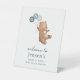 Bear with 3 Blue Balloons Welcome Sign
