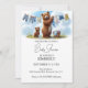 A mother bear and her cub are standing together in a sunlit forest clearing, hanging laundry on a clothesline. The mother bear is gently pinning up clothes while the curious cub playfully helps, trying to hang a small piece of cloth. The scene feels warm and cheerful, with bright sunlight filtering through the trees, creating a sense of comfort and love between the mother and her young.
