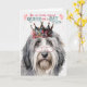 An adorable birthday card which features a sweet and royal looking Bearded Collie dog who sends fun celebratory wishes.