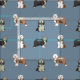 Bearded collie dogs blue fabric