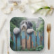 Bearded Collie Peeking Over Old Fence Paper Plate