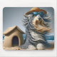 Bearded Collie With Sandcastle Doghouse Mouse Pad