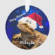 This beardie sports a Santa hat and wishes you a Merry Christmas.